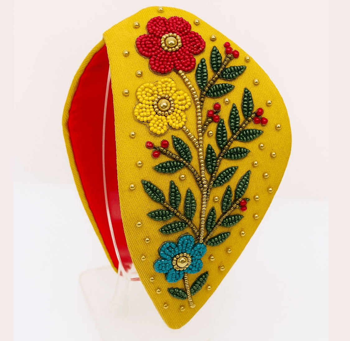 - Product Name: Mustard Yellow Beaded Floral Headband